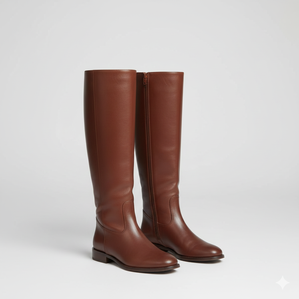 The Boot: Flat, knee-high Riding Boots in structured leather.