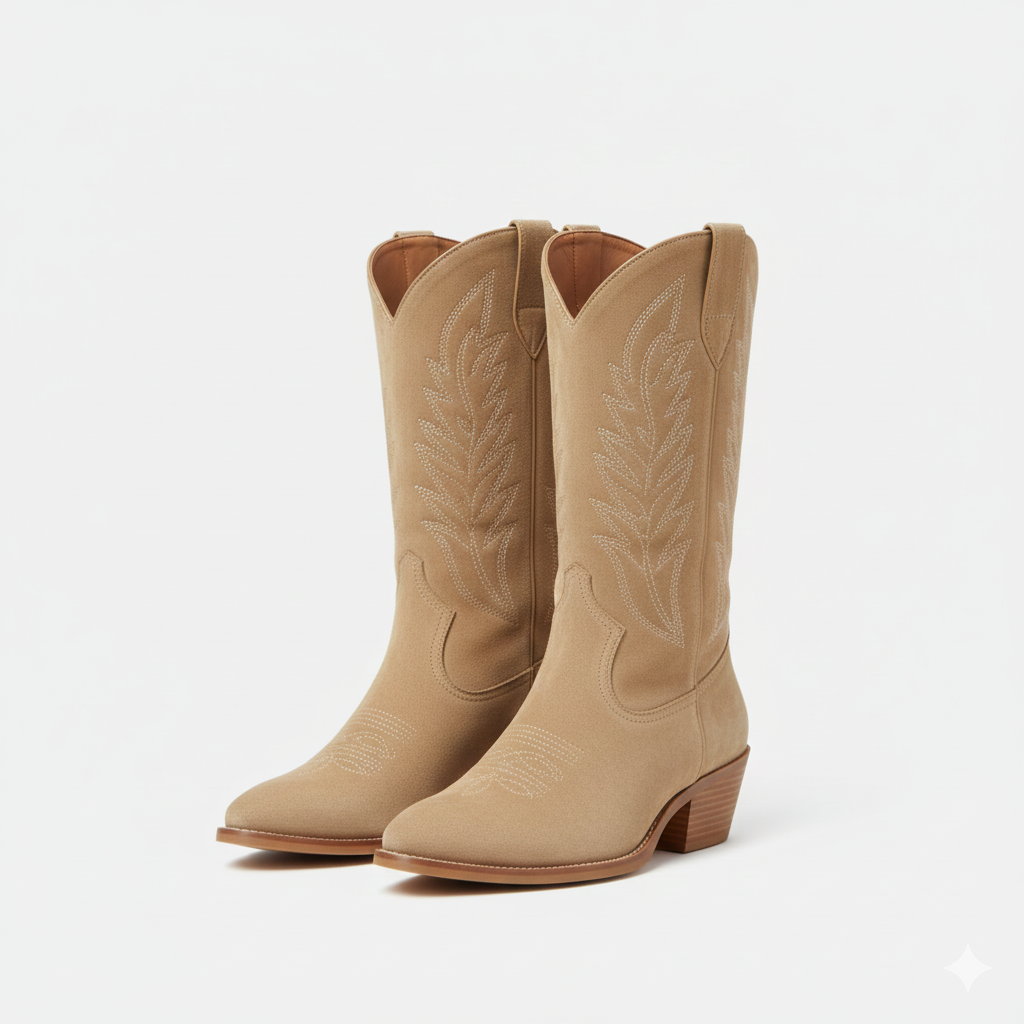 The Boot: Mid-calf Western-style Boots in neutral leather or suede.