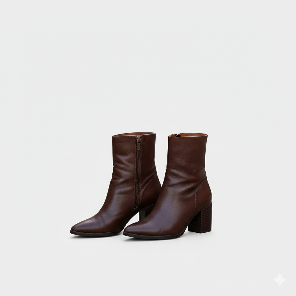 The Boot: Pointed-toe Leather Ankle Boots (block heel provides stability).