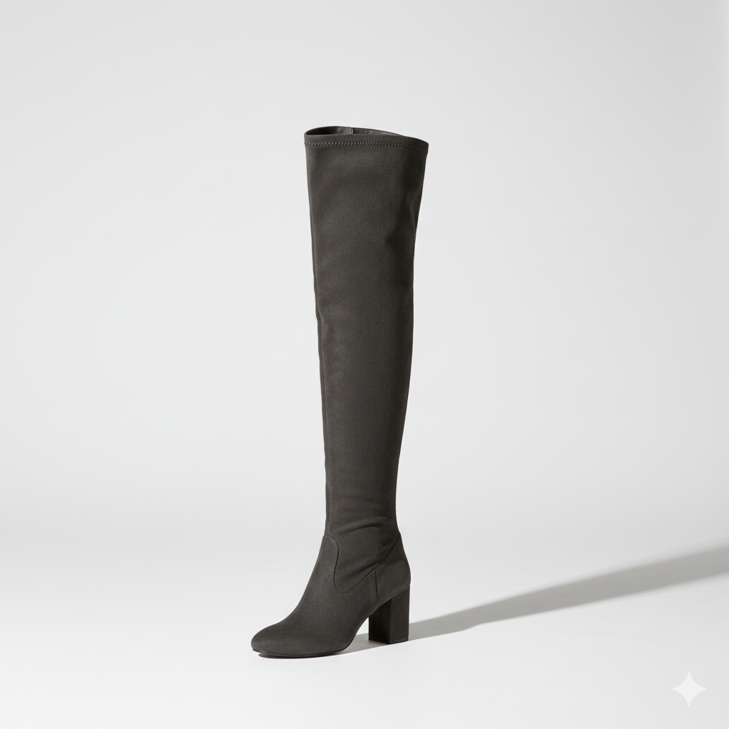 The Boot: Suede or leather Over-the-Knee Boots in black or charcoal.