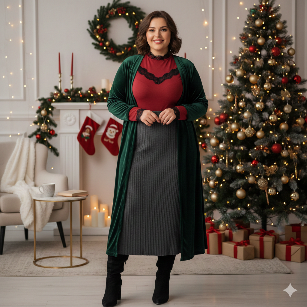 The search for the perfect Curvy Christmas Outfitsis officially over! The holiday season is about celebrating, and your outfit should make you feel confident, radiant, and absolutely fabulous. Finding the perfect festive look means choosing silhouettes that flatter your natural shape and fabrics that offer both structure and support.