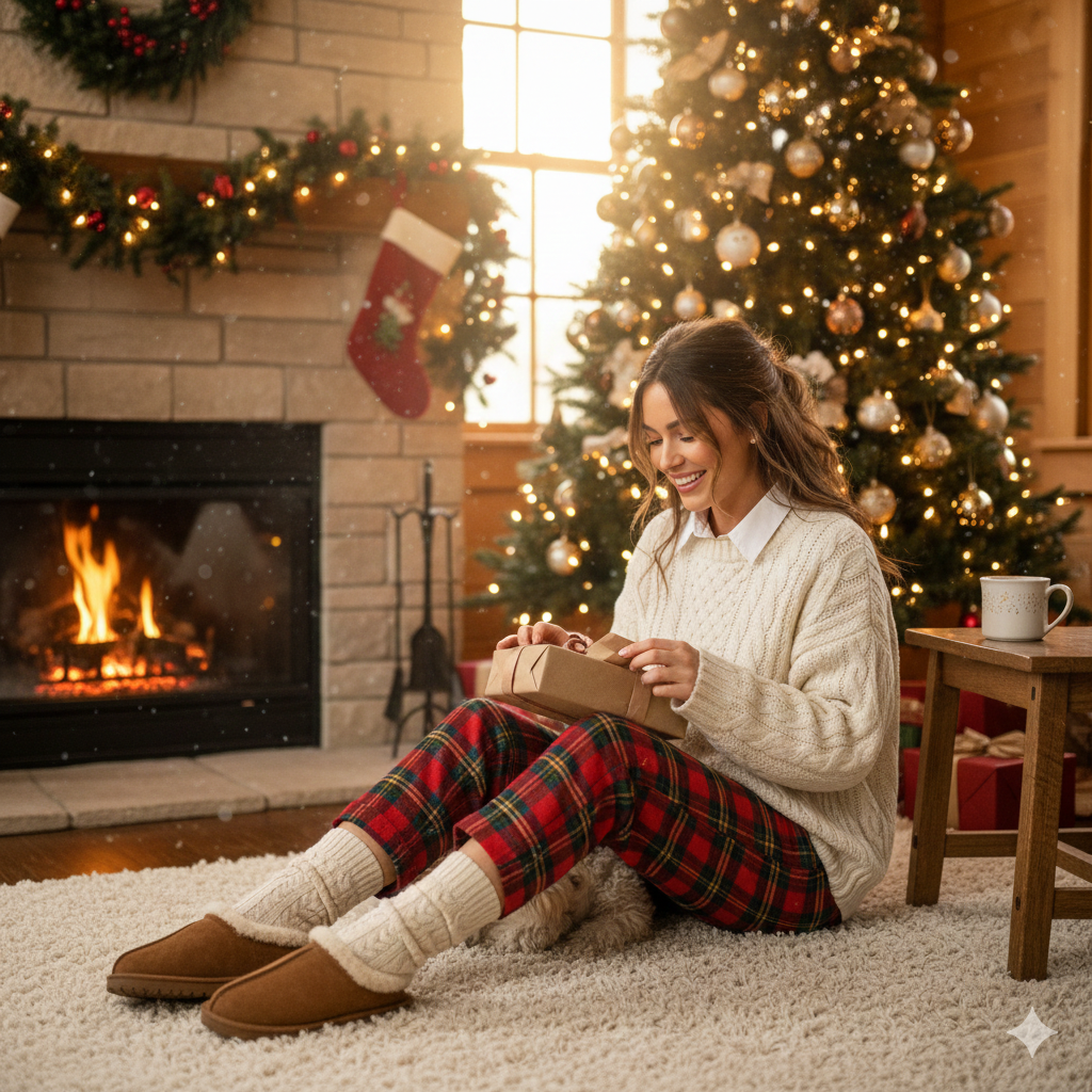Perfect for opening gifts, brunch, or a casual gathering with family where comfort is key but style isn’t forgotten.