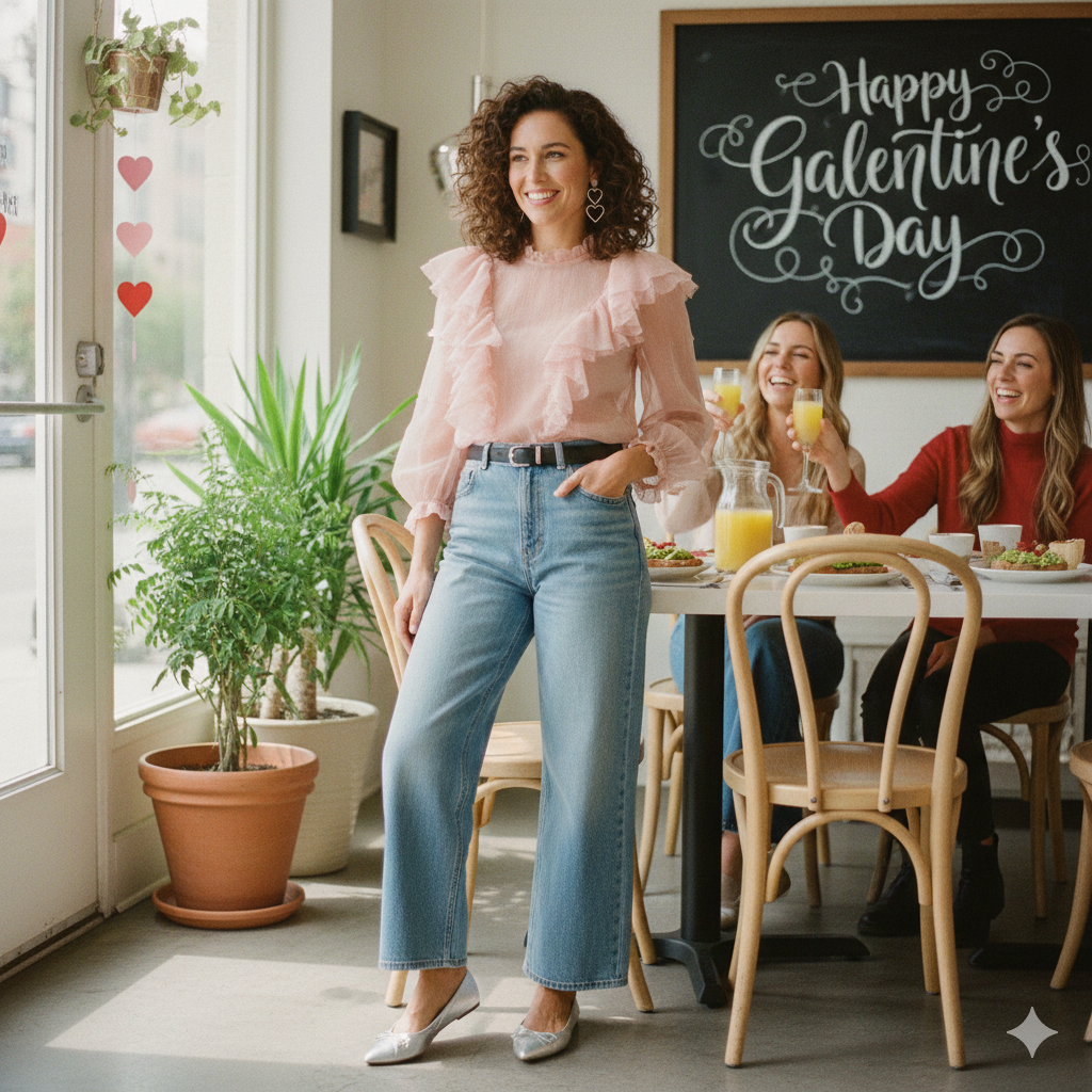Brunch with the girls is the perfect time to experiment with Valentine’s Day outfits that feature trends your partner might not “get,” but your best friends will absolutely adore. The goal here is chic, effortless, and highly photographable Valentine’s Day outfits.