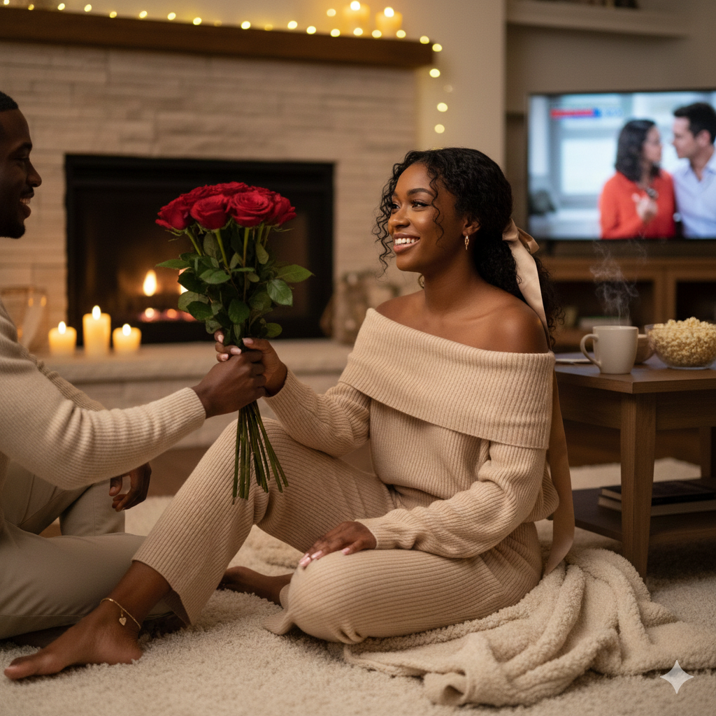 Staying in is the new going out. Whether it’s a home-cooked meal or a movie marathon, “cozy” shouldn’t mean “drab.” The trend of “elevated loungewear” has redefined what we think of as Valentine’s Day outfits.